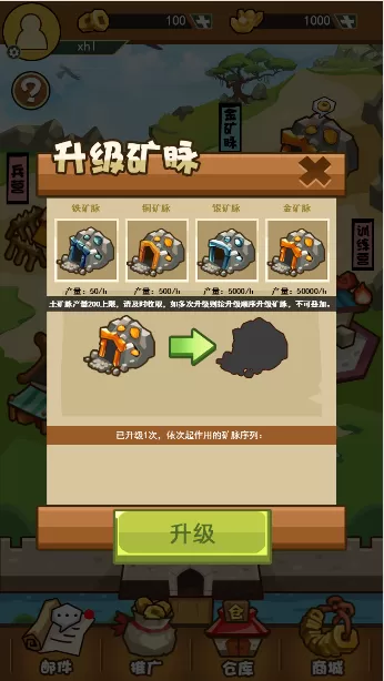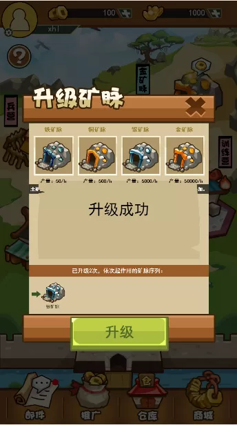 升级矿脉获取矿石