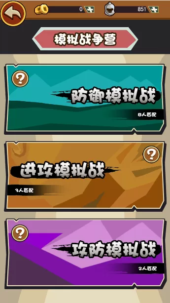 防御模拟战:8玩家选择房间等级(按分级)匹配进入座位。每个玩家选择自己想要防守的城池部位,分别为左侧,中间,右侧。