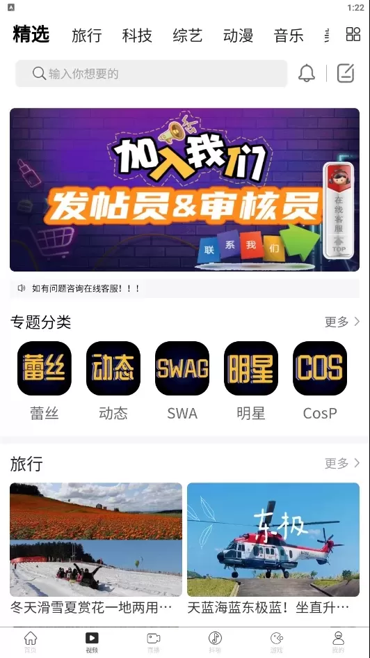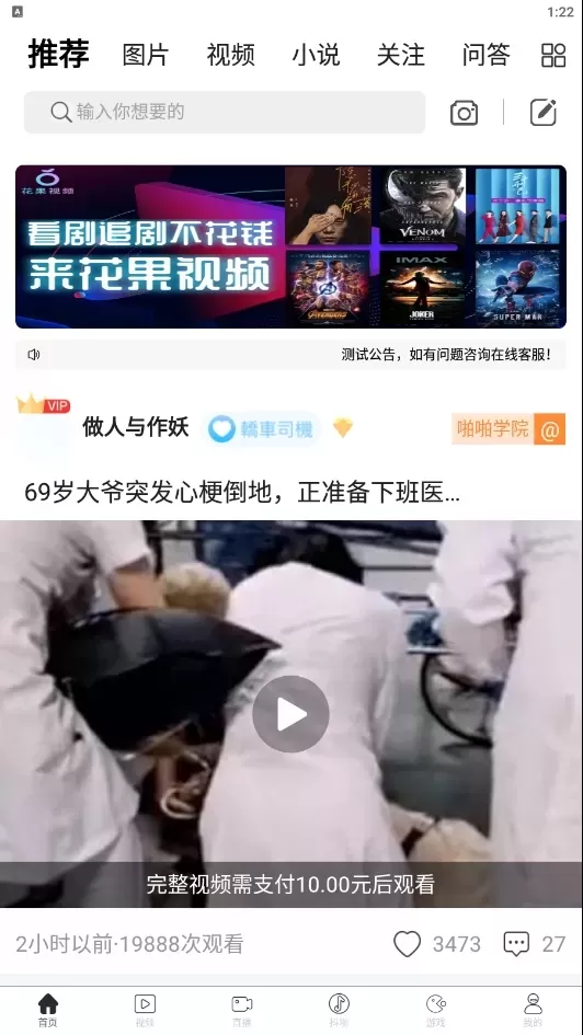 长视频+短视频+直播+交流社区+小说+图片+游戏等各大功能整合