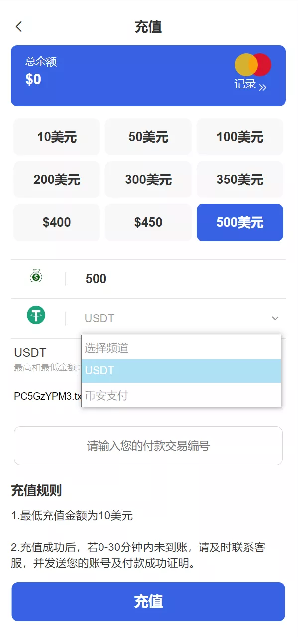 USDT 数量: 0.00