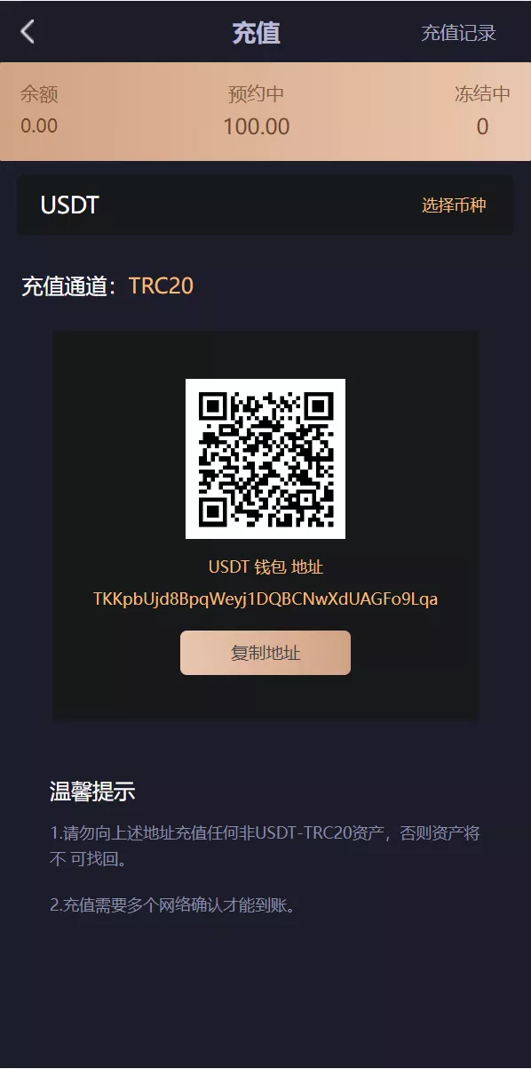 USDT.TRC20 地址: