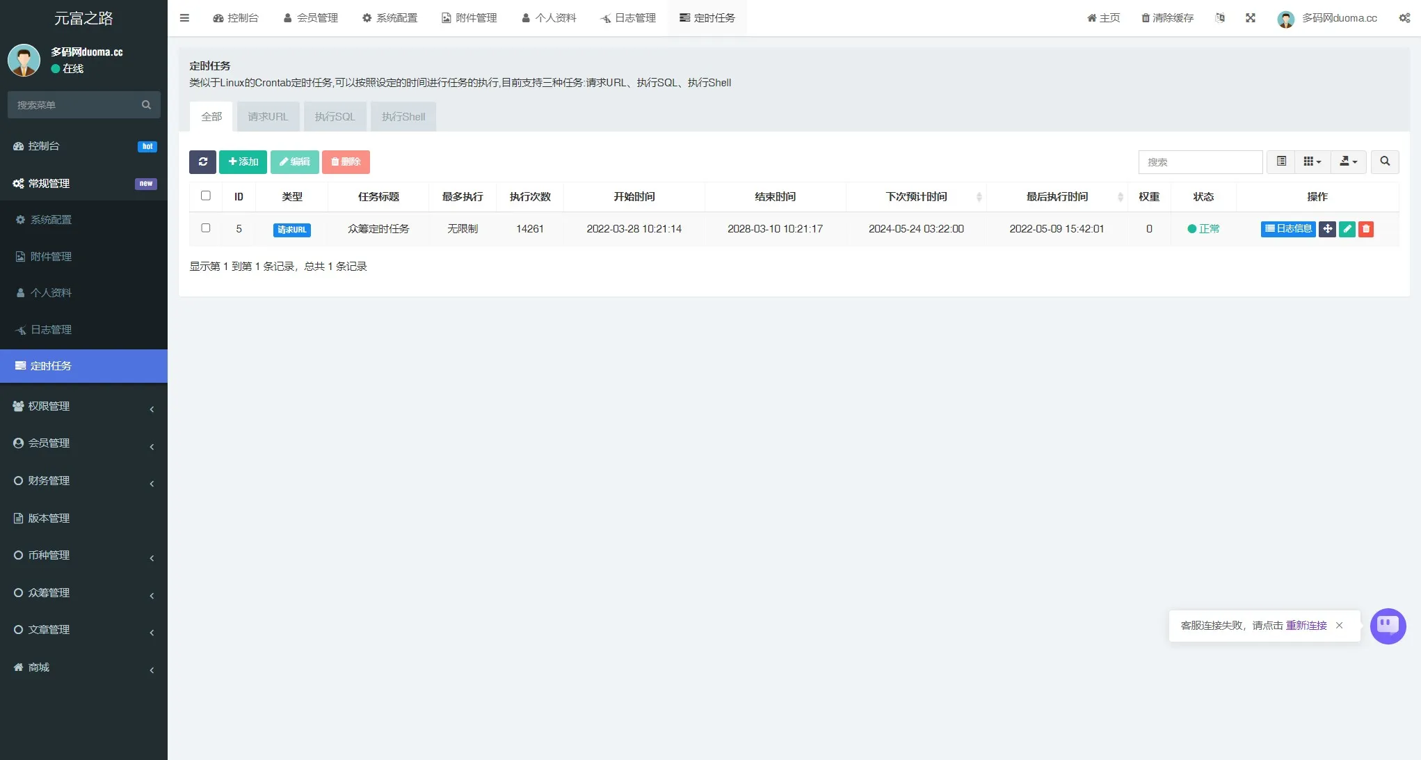 计划任务在后台插件已经设置好了,内置了商城和在线客服系统