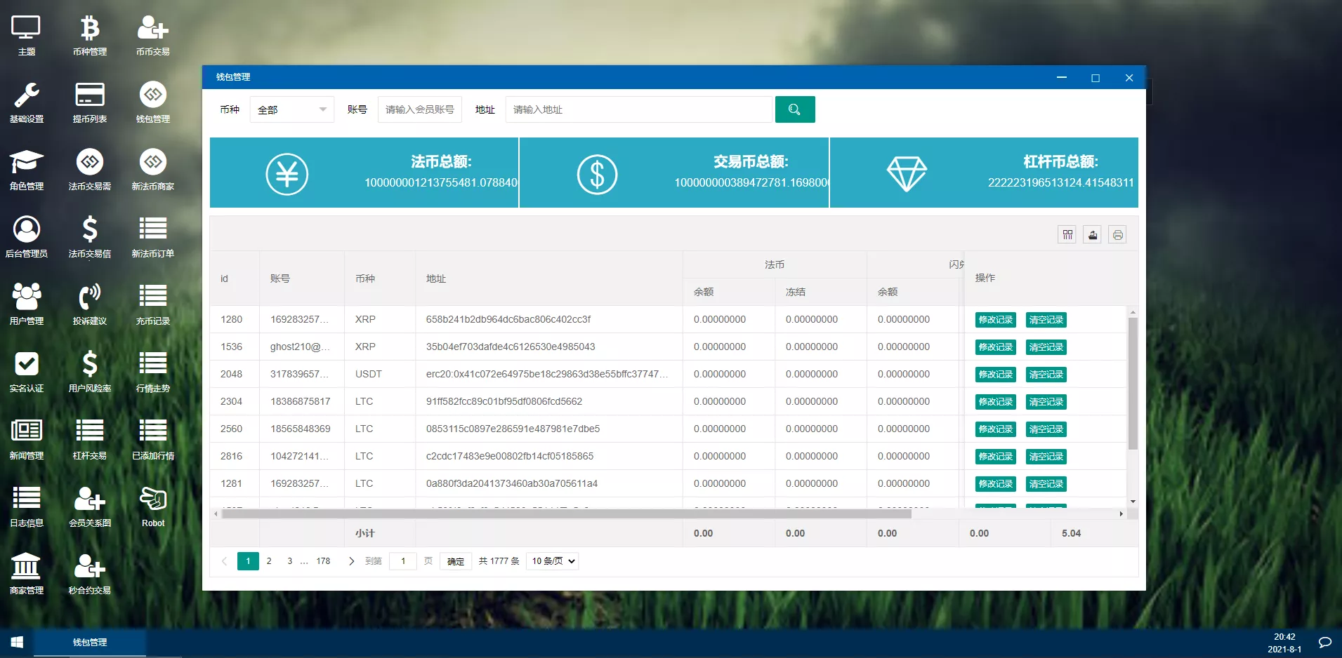 3、钱包管理(用户钱包管理、资金调节、钱包日志、转入转出记录)