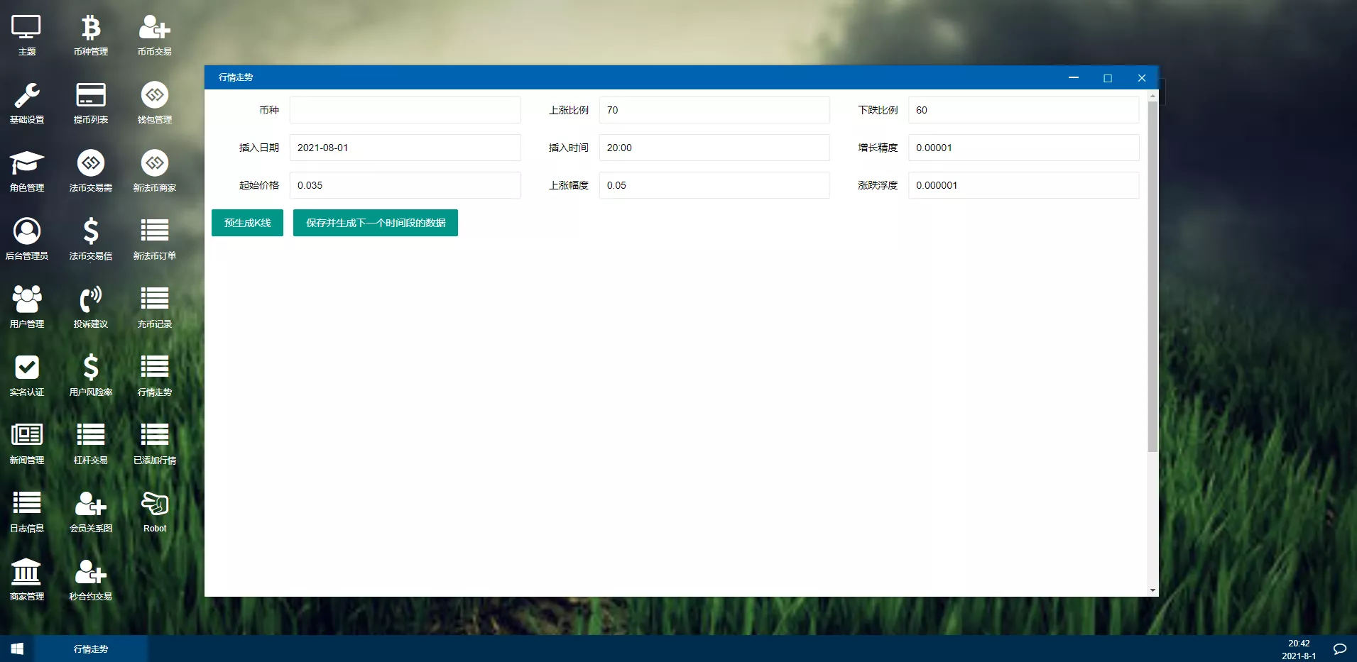 1、平台概况(实时行情、高端K线、合约交易、BI数据分析、币种统计、用户统计、交易统计、异常用户)