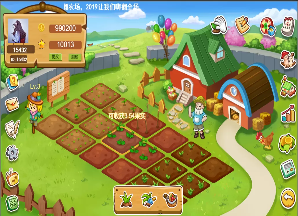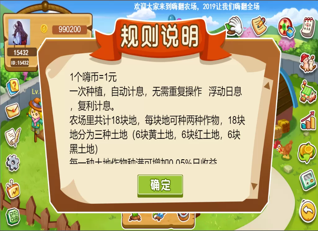 每一种土地作物种满可增加0.05%日收益。
